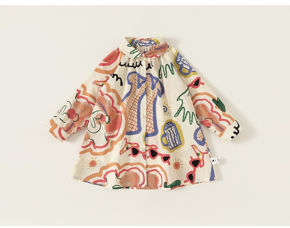 Платье-рубашка с разноцветным принтом —идеальный выбор для ярких и стильных малышей. Универсальный крой не сковывает движений, а необычный авторский принт радует глаз и вызывает восторг у ребенка. Мягкая, дышащая ткань заботится о нежной коже, обеспечивая комфорт даже в самый активный день.