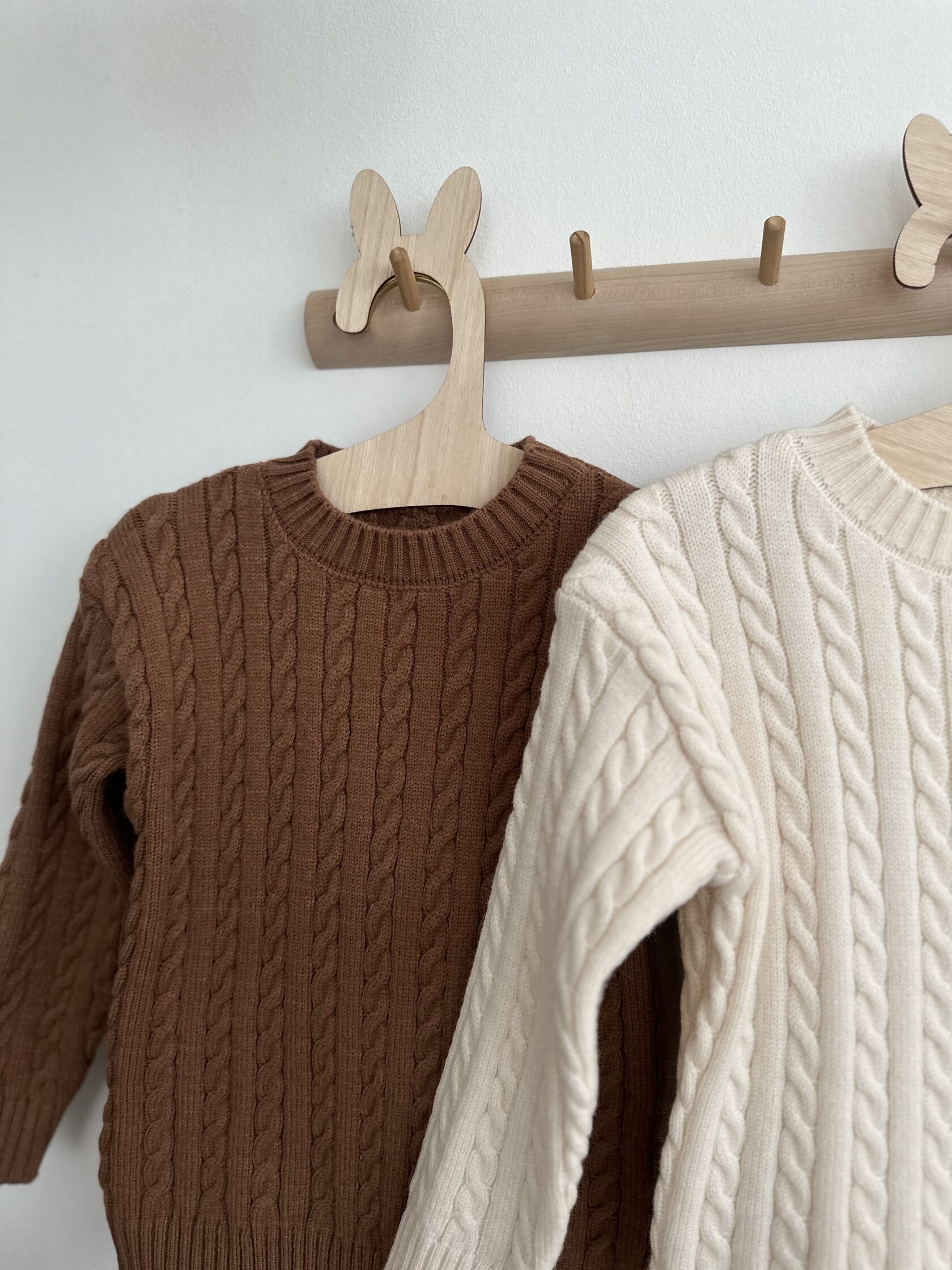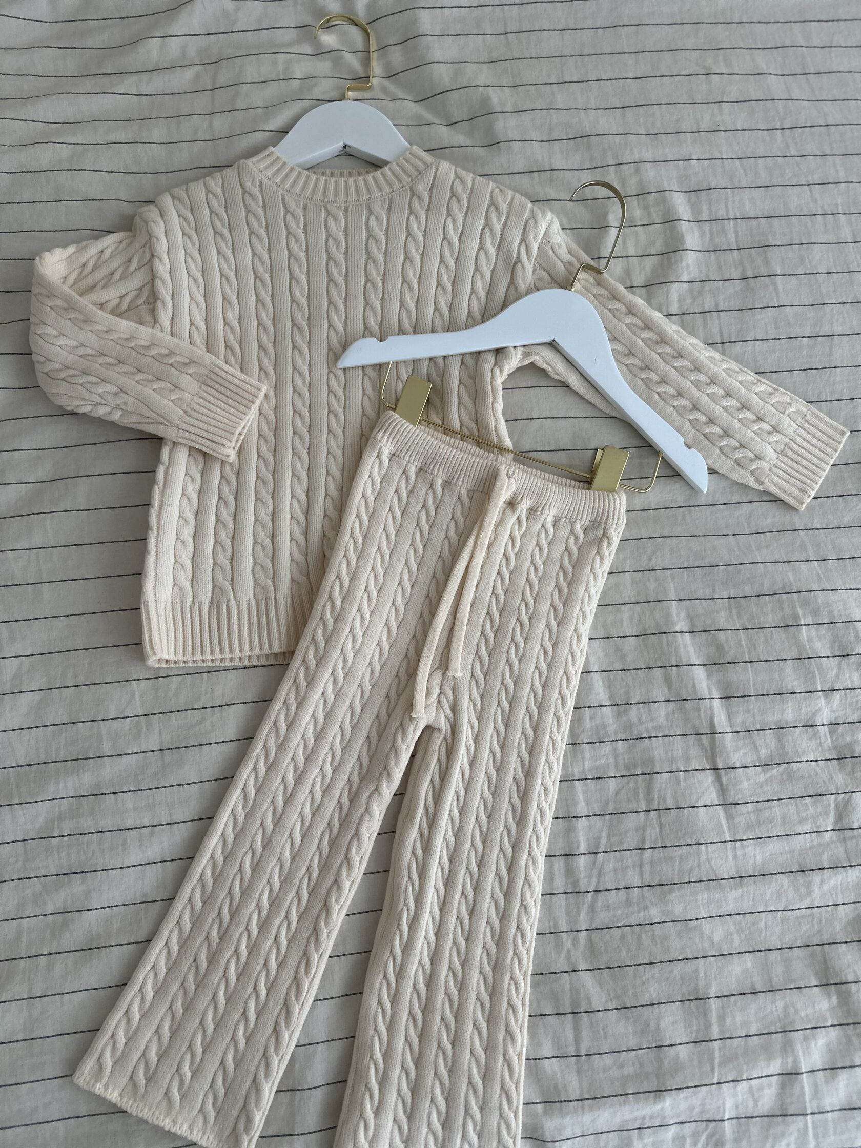 Костюм из вязаного трикотажа. Мягкий и гипоаллергенный материал идеально подходит для нежной детской кожи, не вызывает раздражения и отлично сохраняет тепло. Стильный дизайн с объёмной косой добавляет образу уюта и модного шарма. Классические оттенки — шоколад и молоко — легко сочетаются с любой одеждой гардероба. В таком костюме ребёнок будет чувствовать себя комфортно как дома, так и на прогулке.