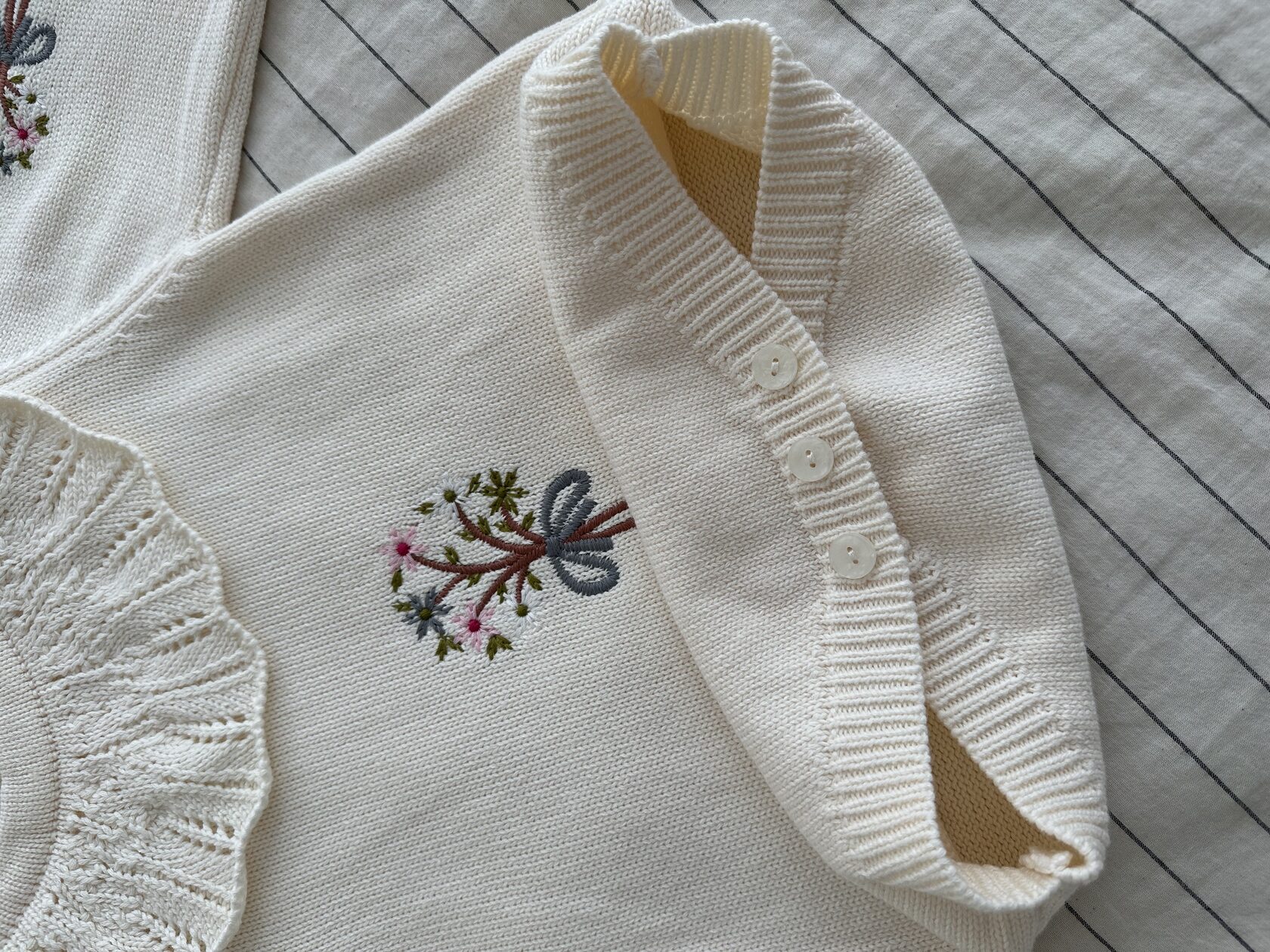 Вязаный кардиган с вышивкой. Мягкая натуральная пряжа бережно согревает и не раздражает кожу. Кардиган на пуговицах легко надевается и снимается, подходит для прогулок, детского сада и семейных праздников. Ручная работа гарантирует качество и долговечность вещи.